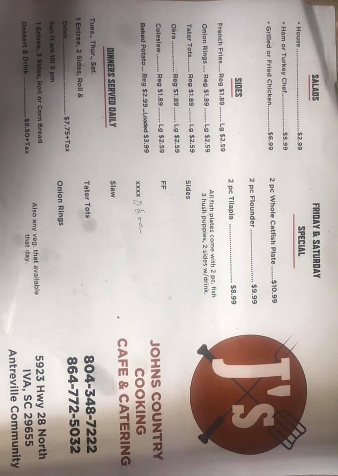 Welcome to Johns Country Cooking Cafe, a delightful culinary gem located at 5923 Hwy 28 S, Iva, SC. This charming cafe serves up hearty portions of authentic southern comfort food that will warm your soul.